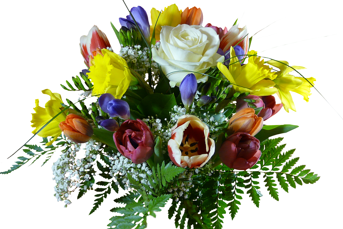 • een bos bloemen bij een verjaardag,